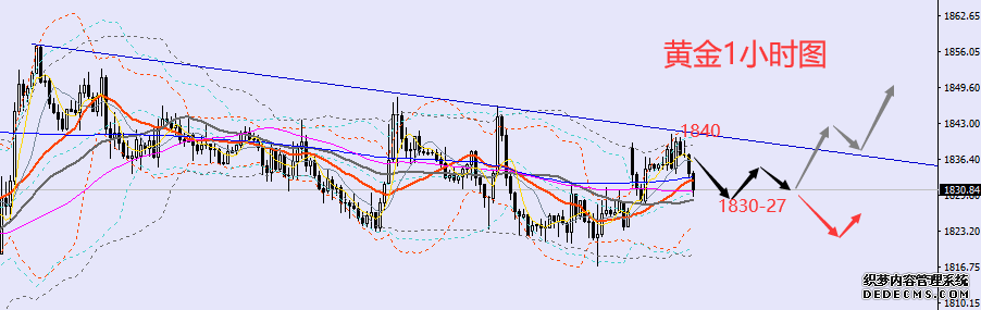 根据小时结构,晚间黄金上方还是继续先关注1840-43压力带测试,这是日线日线,可能会对应美指对其自身20日线争夺情况,即美指若跌破20日线,则黄金也不太可能冲破20日线日线日线也就不在话下。晚间黄金下方则关注1830-27一带回补,这是今日行情的跳空缺口位,虽早间行情已有回补,但如果晚间行情跌破,那么预示市场已经对周末消息面有所淡化,行情重回技术偏弱的可能性加大。