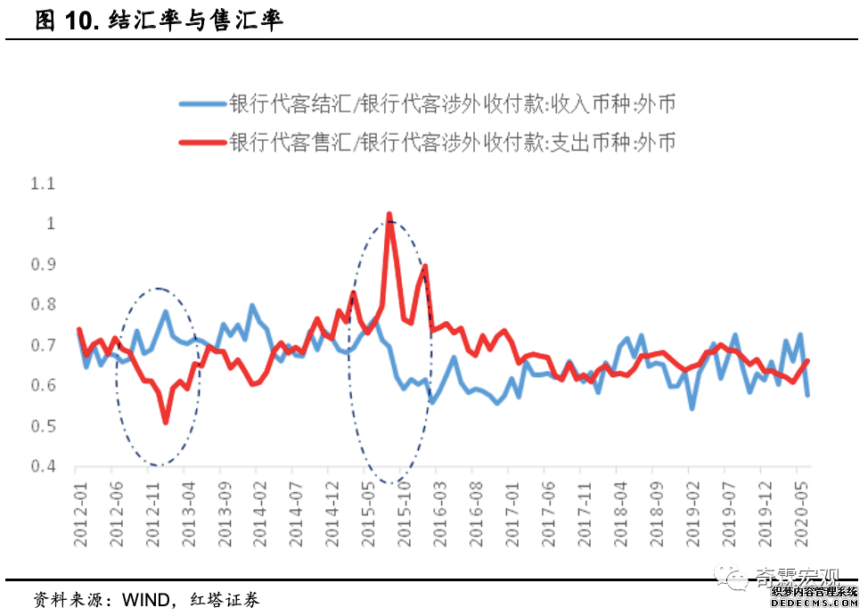 这一点前文已经提到过了,主要是要考虑到结售汇意愿,用结售汇率来衡量,结售汇率同样受到了人民币汇率升贬值预期的影响。