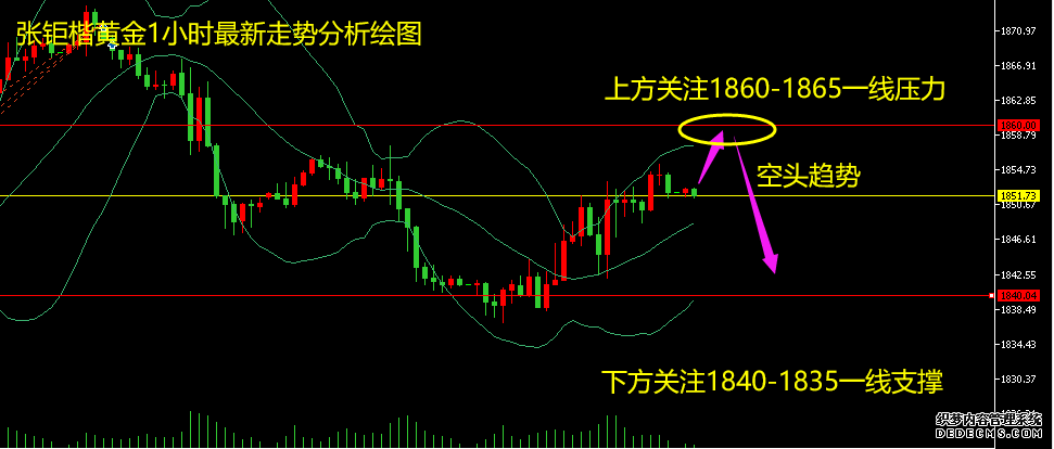 黄金反弹:1853-1855附近分批做空(买跌)十分之二仓位,止损6个点,目标1845-1840附近,破位看1835-30一线(建议仅供参考,投资有风险,入市需谨慎!)